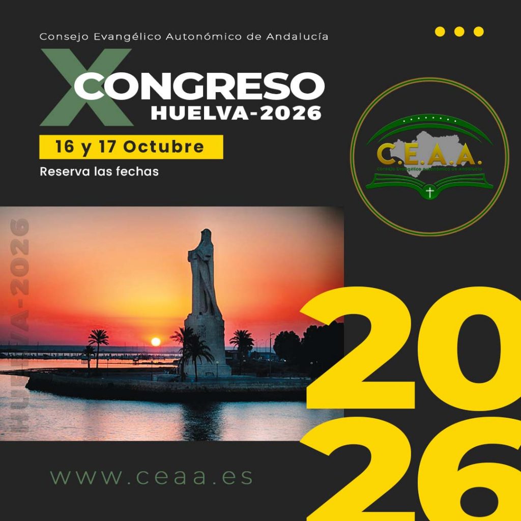 El Consejo Evangélico Autonómico de Andalucía (CEAA) celebrará su X Congreso Evangélico Autonómico Andaluz en Huelva, los días 16 y 17 de octubre de 2026, y en el que pretende reunir a más de 600 representantes de toda la región.